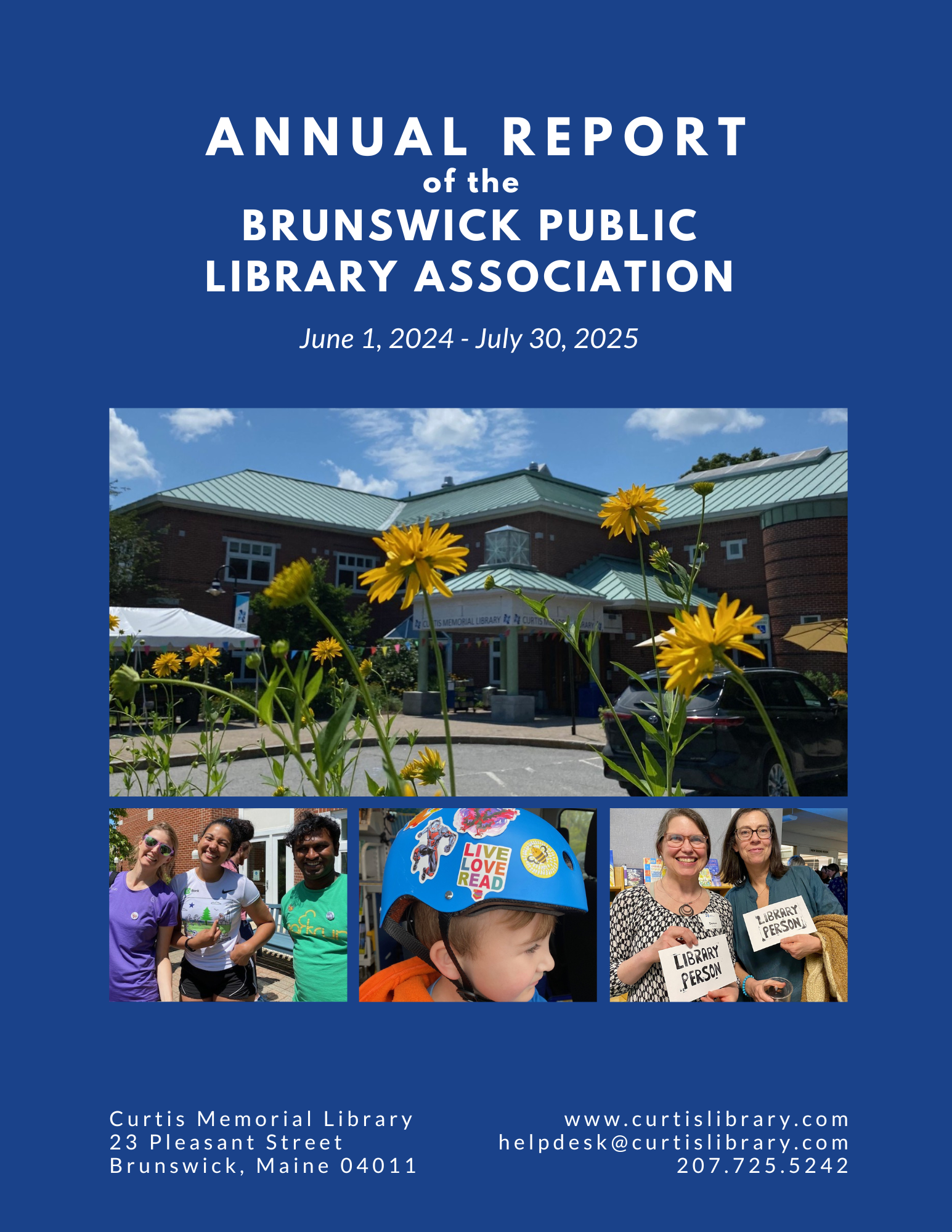 The Brunswick Public Library Association, founded in 1883, is a 501(c)(3) organization that operates the Curtis Memorial Library in Brunswick, Maine. It is governed by a Board of Directors (consisting of 12-15 individuals) who may be elected to serve up to two consecutive three-year terms.