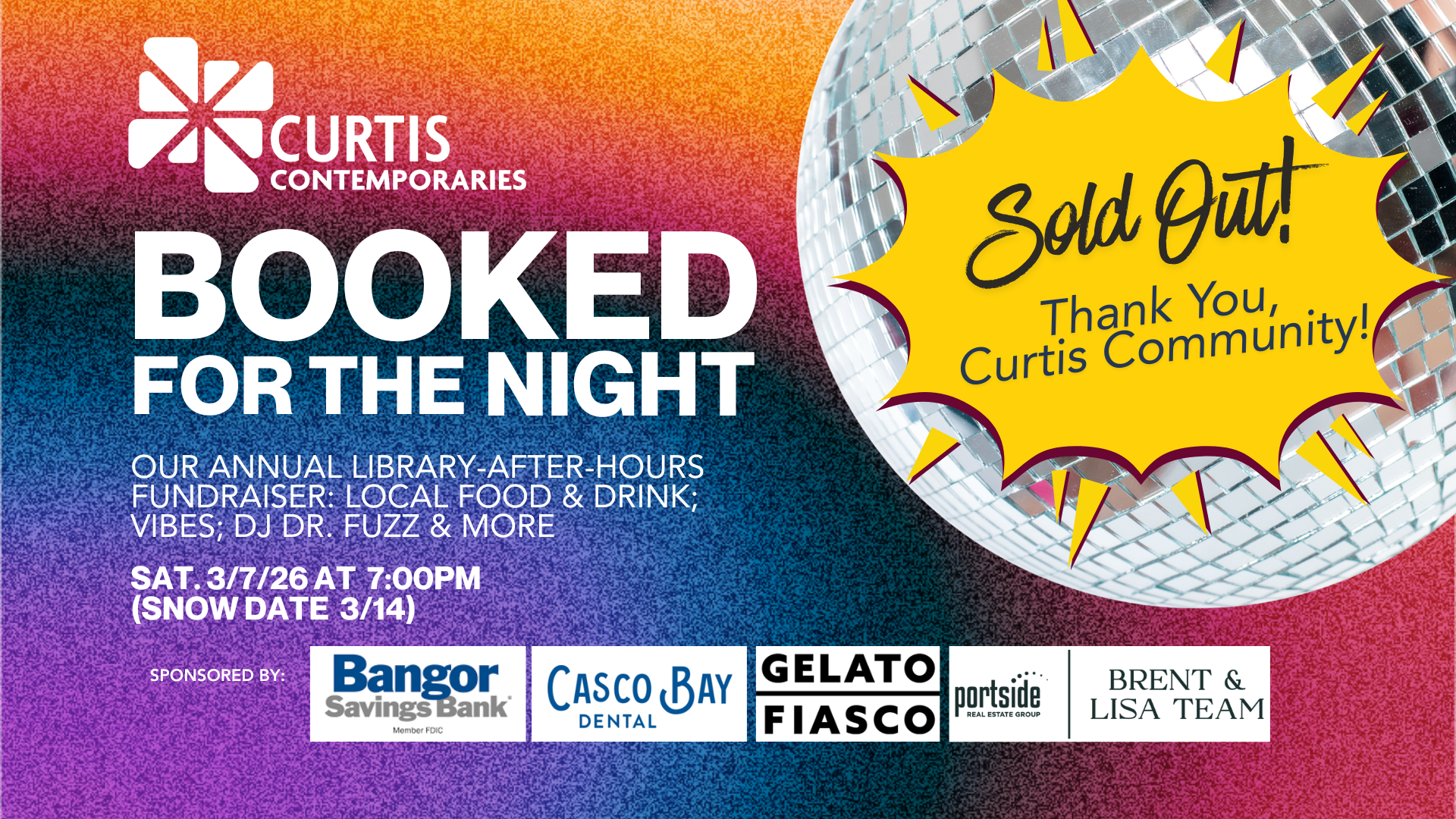 A $25 annual household membership to the Curtis Contemporaries offers early information to our annual sell-out event, BOOKED FOR THE NIGHT, as well as invitations to special events and a regular newsletter.